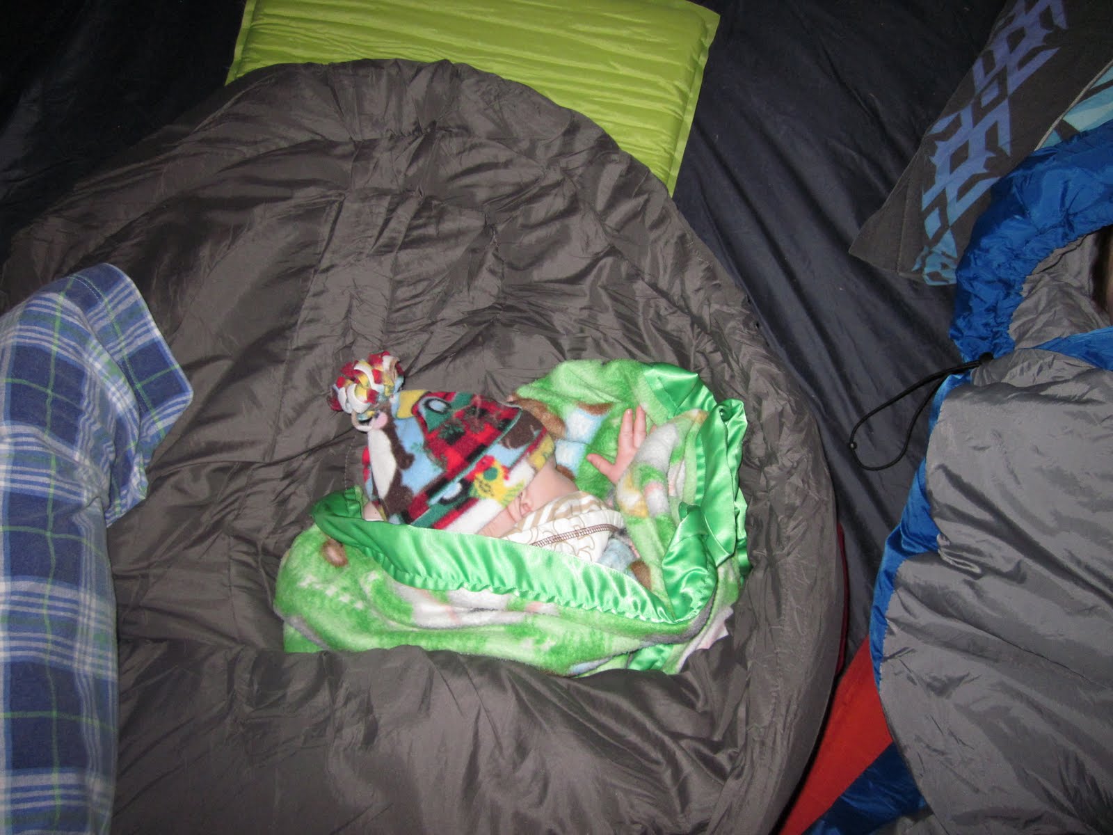 Benn helps Daddy put up the tent while Mommy watches JJ "start" a fire (No worries, we did not even have a fire) and also feed Caleb.